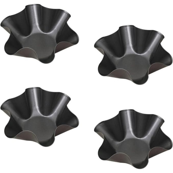 Tortilla Pan Set - 4-Piece Non-Stick Carbon Steel, Taco Salad Bowl, Tortilla Clam Pans, Flower Shaped Baking Pan, Kitchen (Black, 4 Pieces) (16.5 x 7.5 x 6 cm)