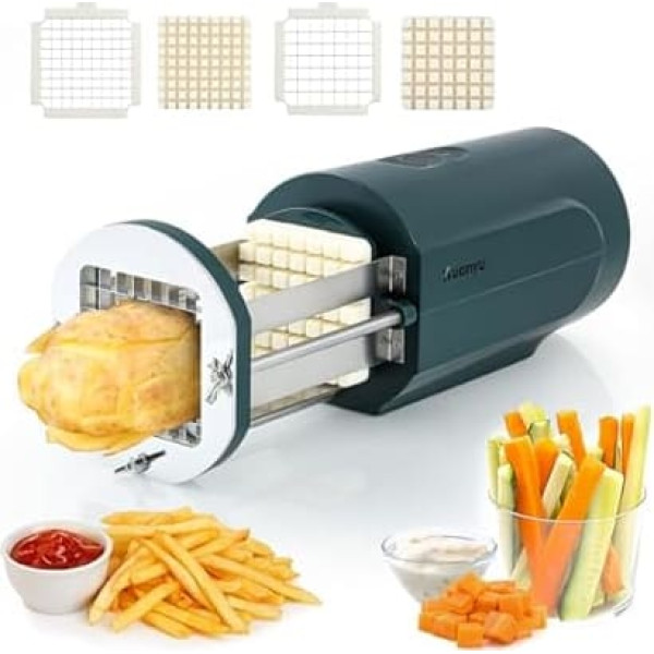 Electric chip cutter: the electric potato cutter is more efficient and labour-saving than the traditional manual potato cutter, and it has the automatic cycle mode that you do not need to press all the time, perfect for home use or commercial use. 【2 Sizes Blades】The chip cutter is equipped with 2 sizes of stainless steel blades: 1/2 inch blade and 3/8 inch blade, you can make 2 sizes fries according to your needs. Besides, the blades are removable, very convenient to clean after use. Compact size: the electric potato cutter measures only 39.4 x 14 x 13.5 cm and weighs 2.54 kg. The compact size will not take up much space in your kitchen, very easy to move and store! Multifunctional cutter: the electric chip cutter is not only suitable for cutting potatoes, but also for other vegetables and fruits such as carrots, cucumbers, onions, pears, apples and so on. 【Excellent Service】We support 1 year warranty on all products in our shop. For damaged parts, we will replace a new one for customers. Besides, we provide 1-to-1 online consultation after sale for each consumer with high efficiency, bring you worry-free shopping experience. › See more product details