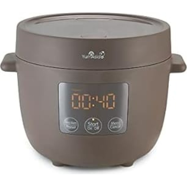Yum Asia Tsuki Mini Rice Cooker with Shinsei Ceramic Bowl (2.5 Cups, 0.45 Litres), 5 Rice Cooking Functions, 2 Multicooker Functions, Hidden LED Display, 220-240V (Pebble Grey)