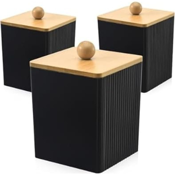 Pack of 3 Dustproof Bamboo Cover Cotton Buds Container, Black, Robust Acrylic Cotton Pad Dispenser, Multifunctional Cotton Pads Storage, Bathroom Organiser for Cotton Buds, Hairpins, Cotton Pad