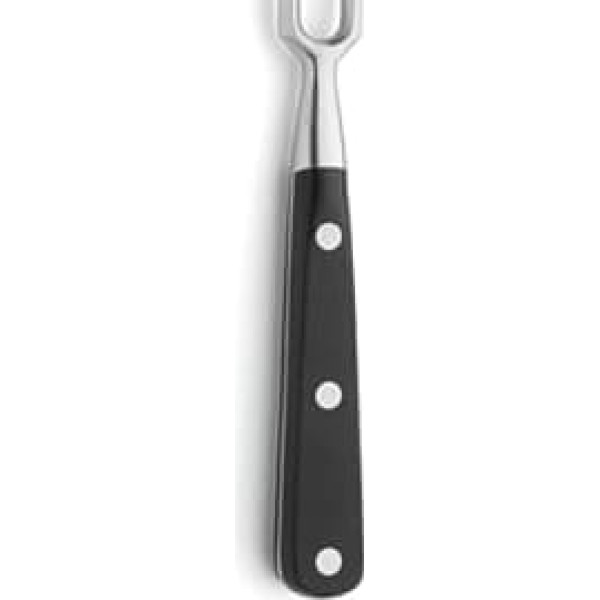 STURDY FORK TINES: The sharp carving fork is characterised by 14.5 cm long fork tines that effortlessly penetrate any meat. Ideal for securely holding and flipping large pieces of roast when cutting or grilling. Durable and hygienic: the combination of 3Cr14 blade steel and robust plastic handle not only ensures durability, but also for continuous hygienic use. Comfortable handle: the classic rivet handle made of high-quality plastic provides balanced handling and is non-slip, which increases safety when using. Easy care: thanks to its high quality, the roasting fork is rust-proof and dishwasher safe. This ensures effective cleaning after each use. Hand wash recommended. Versatile: whether roasting, grilling or serving - this robust meat fork masters any challenge - an indispensable kitchen aid for festive occasions. › See more product details; Product description Amefa Meat fork 29 cm. Perfect for grilling; Product description Amefa Meat fork 29 cm. Perfect for grilling; Amefa Meat fork 29 cm. Perfect for grilling