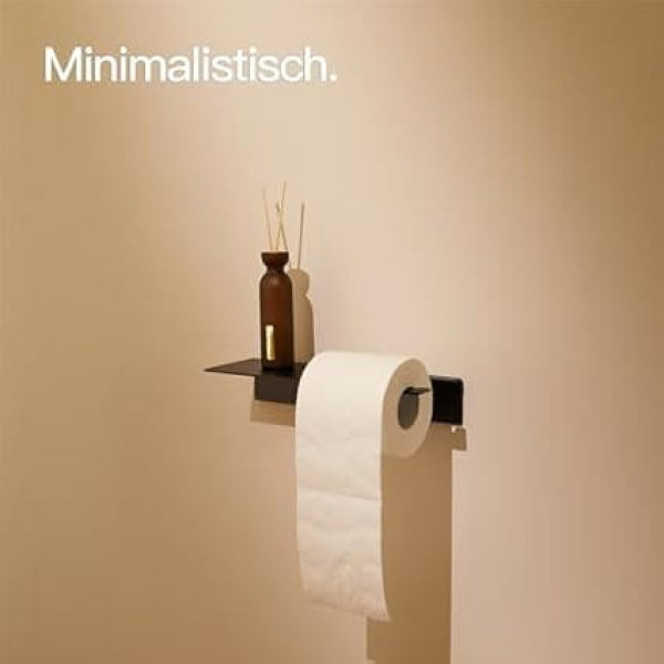 ☑️ Easy to install and secure hold. The toilet paper holder without drilling can be mounted on the wall and bathroom accessories with the enclosed branded adhesive tape without drilling and without tools. ☑️ Made from one piece. Our toilet roll holder without drilling is made from a single, solid piece of metal. So no screws can loosen nor will the toilet paper holder bend over time. ☑️ Real eye-catcher thanks to modern and simple design. The roll holder is straight chic - with its subtle swing, it is a win for any bathroom. ☑️ Various colours for the perfect colour scheme of your rooms. Whether black, brushed silver or white - decide which colour best matches your bathroom accessories. ☑️ HIGH QUALITY MATERIAL Made of rolled aluminium, sandblasted and anodised for the simple, matte finish of the toilet roll holders. Rustproof and scratch resistant. 5 mm material thickness for added high quality. › See more product details