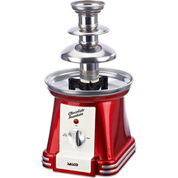 SALCO Chocolate Fountain 3-Tier Stainless Steel Retro Style Chocolate Fondue, 90 Watt, Chocolate Fountain, Metallic Red, for Fruits, Dried Fruits, Biscuits - The Highlight at Every Party