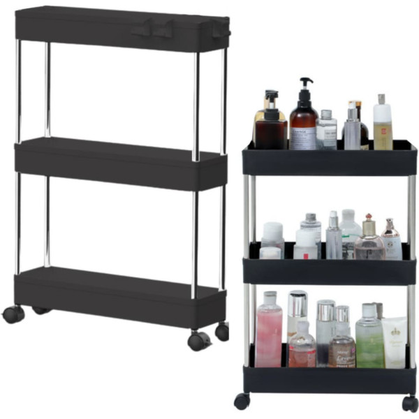 Lean Daudzfunkcionāls pārvietojams grāmatu plaukts 3 plaukti uz riteņiem Melns