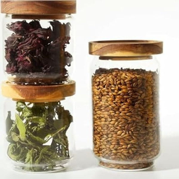 Perfect for tea storage – the airtight seal around the wooden lid keeps moisture out and keeps the tea fresh for longer Container shape: round Special feature: stackable Item length width height: 9.0 centimeters Material: glass Capacity: 950.0 ml Is dishwasher safe: True Item package quantity: 3 › See more product details