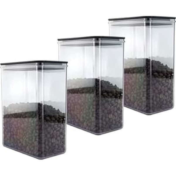NAVACALA Storage Jars Set of 3 Plastic Airtight with Lids Storage Jars for Storing Pasta Rice Rlour Cereal Dispenser Kitchen Organizer Black (1250ml x 3)