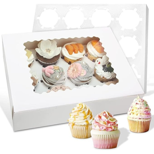 Cake boxes with window are perfect for displaying your cake or giving as a gift. Each box contains a paper insert to keep the cake in place so it does not slip. The cupcake boxes are made of environmentally friendly food grade paper, safe and sturdy. Easy to fold and assemble, space-saving and easy to carry and store. Ideal for family celebrations or cake sales. › See more product details