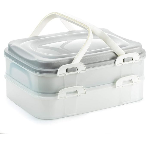 Party Container Cake Container Cupcake Transport Box Food Muffin Transport Box XL with 2 Levels and Folding Handles, Colour: Grey