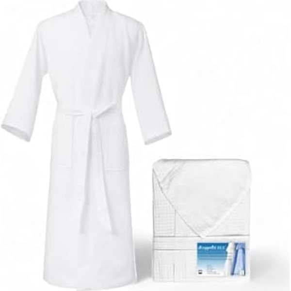 Product description Pure cotton bathrobe with waffle pattern, ideal for sports, small pack size, exceptional when drying, with matching belt and packed in a bag. Available in white, very modern, young and trendy. Made of pure cotton with special workmanship for quick drying, as it has a considerable absorbency when worn. Its practicality is absolute and is very light, easy to clean, quick-drying and very durable. It is an innovative answer in the field of clothing, especially for travel, leisure, sports but also in everyday life. Machine washable, quick drying. Composition: 100% hydrophilic cotton Available in 5 different comfortable sizes, we recommend you buy one size larger as pure cotton shrinks when washing. This is a quality product. (Note: Colors may vary slightly due to different monitor settings. Size Guide: Size weight of height: S 60-65 kg 160-165 cm. M 65-75 kg 165-175 cm. L: 75-85 kg, 175-180 cm. XL 85-95 kg 175-180 cm. XXL > 95 kg.; Product description Pure cotton bathrobe with waffle pattern, ideal for sports, small pack size, exceptional when drying, with matching belt and packed in a bag. Available in white, very modern, young and trendy. Made of pure cotton with special workmanship for quick drying, as it has a considerable absorbency when worn. Its practicality is absolute and is very light, easy to clean, quick-drying and very durable. It is an innovative answer in the field of clothing, especially for travel, leisure, sports but also in everyday life. Machine washable, quick drying. Composition: 100% hydrophilic cotton Available in 5 different comfortable sizes, we recommend you buy one size larger as pure cotton shrinks when washing. This is a quality product. (Note: Colors may vary slightly due to different monitor settings. Size Guide: Size weight of height: S 60-65 kg 160-165 cm. M 65-75 kg 165-175 cm. L: 75-85 kg, 175-180 cm. XL 85-95 kg 175-180 cm. XXL > 95 kg.; Pure cotton bathrobe with waffle pattern, ideal for sports, small pack size, exceptional when drying, with matching belt and packed in a bag. Available in white, very modern, young and trendy. Made of pure cotton with special workmanship for quick drying, as it has a considerable absorbency when worn. Its practicality is absolute and is very light, easy to clean, quick-drying and very durable. It is an innovative answer in the field of clothing, especially for travel, leisure, sports but also in everyday life. Machine washable, quick drying. Composition: 100% hydrophilic cotton Available in 5 different comfortable sizes, we recommend you buy one size larger as pure cotton shrinks when washing. This is a quality product. (Note: Colors may vary slightly due to different monitor settings. Size Guide: Size weight of height: S 60-65 kg 160-165 cm. M 65-75 kg 165-175 cm. L: 75-85 kg, 175-180 cm. XL 85-95 kg 175-180 cm. XXL > 95 kg.