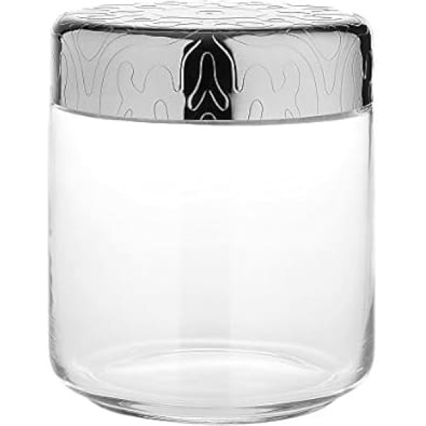 Designer: Marcel Wanders Dimensions: cm h. 12.30- diameter cm10.50 - cl75.00 Glass jar. Hermetic lid in 18/10 stainless steel, mirror polished with relief decoration. In 18/10 stainless steel Mirror polished › See more product details