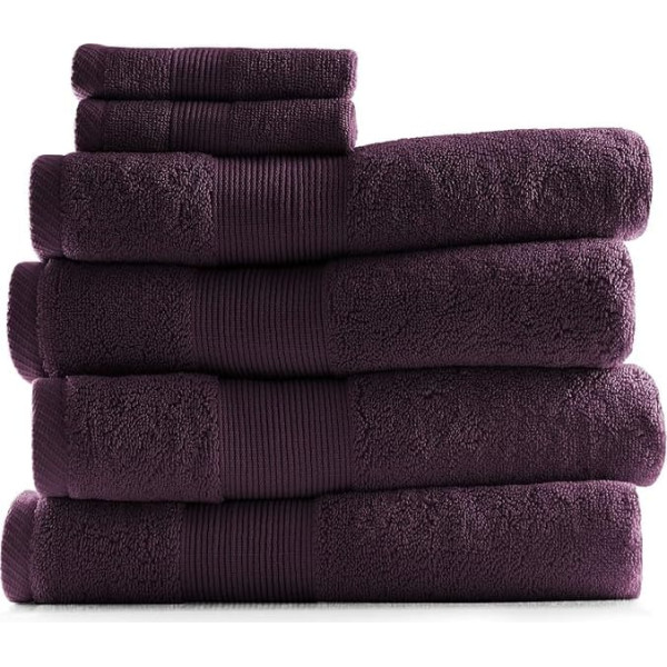 Hearth & Harbor 100% Cotton Set - Ultra Soft & Highly Absorbent for Beach, Spa & Bath Shower Towels, 4 Bath & 2 Face Cloths - Purple Aubergine