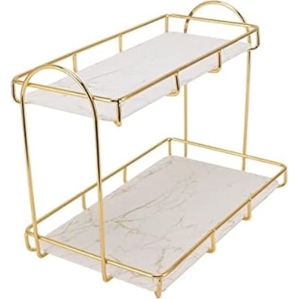 METALLIC This double layer storage is made of high quality iron material, which is strong enough to last long, and strong enough to hold a variety of spices and utensils. Double layer design: the metal shelf adopts a double layer design, large storage capacity and small footprint. Easy to Install 2 layer cosmetic shelves are easy to install and can be placed anywhere while anchored to the wall at the same time to meet your various storage needs. Large Capacity The bathroom shelf has a large capacity, which can hold many toiletries and is practical. You can also use this cosmetic rack as a bathroom organization to store your bathroom essentials, nail polish, or skin care products Scope of application: 2 tier countertops, suitable for bathroom, bedroom, kitchen, etc. › See more product details; Product description Specification: Item Type: 2 Tier Cosmetic Rack Material: Iron, PP Weight: approx. 443 g / 15.6 oz. Package list: 1 x 2-tier cosmetic rack. 2 x PP board. 1 x paste.; Product description Specification: Item Type: 2 Tier Cosmetic Rack Material: Iron, PP Weight: approx. 443 g / 15.6 oz. Package list: 1 x 2-tier cosmetic rack. 2 x PP board. 1 x paste.; Specification: Item Type: 2 Tier Cosmetic Rack Material: Iron, PP Weight: approx. 443 g / 15.6 oz. Package list: 1 x 2-tier cosmetic rack. 2 x PP board. 1 x paste.