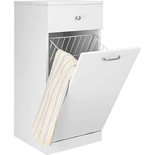 Store your dirty laundry in this beautiful bathroom laundry hamper This laundry basket is made entirely of high quality MDF material that does not absorb the unpleasant odours of dirty laundry, and it can be washed very easily. Thanks to its size of 35 x 35 x 78 cm and the drawer above the laundry hamper, you can store all your family's dirty laundry and it can be easily placed in tight spaces such as behind washing machines under furniture, etc. The hinged door allows you to close the basket without having to view the laundry. The ability to store the basket when not in use, so it can be stored in any room. This is not only a functional base cabinet, but also a beautiful appearance. Simple and minimalist design, with a drawer in which you can store the items you have most at hand. In addition to its enormous functionality, this bed linen is also a beautiful piece of furniture that enhances your room and gives it a very special touch. Don't get laundry for the whole house with the brand new fabric laundry basket from Bakaji. › See more product details; Product description Brand: BAKAJI Dimensions: L 35 cm x W 35 cm x H 78 cm. Laminate board with scratch-resistant melamine finish Colour: white. Hinged door with metal basket + drawer. Material: MDF 1 drawer 1 mm ABS plastic edge, maximum load capacity: 15 kg; Product description Brand: BAKAJI Dimensions: L 35 cm x W 35 cm x H 78 cm. Laminate board with scratch-resistant melamine finish Colour: white. Hinged door with metal basket + drawer. Material: MDF 1 drawer 1 mm ABS plastic edge, maximum load capacity: 15 kg; Brand: BAKAJI Dimensions: L 35 cm x W 35 cm x H 78 cm. Laminate board with scratch-resistant melamine finish Colour: white. Hinged door with metal basket + drawer. Material: MDF 1 drawer 1 mm ABS plastic edge, maximum load capacity: 15 kg