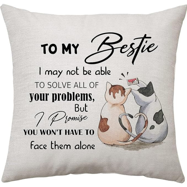 Bestie friendship pillowcases - cushion cover for your best teen girls girlfriend women women. This cushion cover is the best helper to express your sincere emotions. PILLOW COVER GIFT FOR ANY OCCASION - The pillow cover is a perfect gift for your family and friends on a new job, birthday, Christmas, graduation, Halloween, Thanksgiving or other occasions. MATERIAL & SIZE - The pillow cover is made of high quality cotton linen material. Cushion cover 45cm x 45cm Widely Used - The perfect item for home, bed, car, chair, seat, couch, bench or office decor, it is a cute gift for your family and friends. PILLOW IS NOT INCLUDED - Cushion covers only, inserts are not included. The pattern is only available on the front. International products have separate terms, are sold from abroad and may differ from local products, including fit, age ratings, and language of product, labeling or instructions. › See more product details; Product description Bestie Gifts Pillowcases for Women - To my bestie, I may not be able to solve all your problems,but I promise you won't have to face them alone. Size and material: 1 cushion cover size: 45 x 45 cm (manual measurement, 1-2 cm deviation is allowed). 2. Made of high quality cotton linen material. For all kinds of places. 1. They are suitable for tent, bed, sofa, seat, couch, bench, etc. 2. Good decoration for garden, balcony, living room, bedroom, party, office, cafe, car, etc. Note: The pattern is only available on the front. Cushion covers only. Pillows are not included. Washing instructions: 1. Can be hand washed and air dried, or it can be machine washed, gently circulate and dry at low temperature. 2. Do not bleach. 3. Iron if needed.; Product description Bestie Gifts Pillowcases for Women - To my bestie, I may not be able to solve all your problems,but I promise you won't have to face them alone. Size and material: 1 cushion cover size: 45 x 45 cm (manual measurement, 1-2 cm deviation is allowed). 2. Made of high quality cotton linen material. For all kinds of places. 1. They are suitable for tent, bed, sofa, seat, couch, bench, etc. 2. Good decoration for garden, balcony, living room, bedroom, party, office, cafe, car, etc. Note: The pattern is only available on the front. Cushion covers only. Pillows are not included. Washing instructions: 1. Can be hand washed and air dried, or it can be machine washed, gently circulate and dry at low temperature. 2. Do not bleach. 3. Iron if needed.; Bestie Gifts Pillowcases for Women - To my bestie, I may not be able to solve all your problems,but I promise you won't have to face them alone. Size and material: 1 cushion cover size: 45 x 45 cm (manual measurement, 1-2 cm deviation is allowed). 2. Made of high quality cotton linen material. For all kinds of places. 1. They are suitable for tent, bed, sofa, seat, couch, bench, etc. 2. Good decoration for garden, balcony, living room, bedroom, party, office, cafe, car, etc. Note: The pattern is only available on the front. Cushion covers only. Pillows are not included. Washing instructions: 1. Can be hand washed and air dried, or it can be machine washed, gently circulate and dry at low temperature. 2. Do not bleach. 3. Iron if needed.