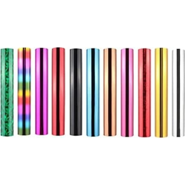 11 different coloured mica film rolls: approx. 5m x 15cm per roll in assorted colors (Note: the films are designed to work with the hot foil system and our hot foil pen, but they are not compatible with laminating systems such as the Minc system) Foil transfer sheets in assorted colors including: silver, gold, red, purple, black, pink, rose gold, blue, broken green glass, red stars, seven colors mica hot foil sheets add a touch to any project from paper crafts to mixed media and more. Great for arts and crafts projects, greeting cards and stationery, scrapbooking, school projects, party decoration, picture frames, gift items It is a simple and attractive effect for decorating, mainly used for invitations, business cards, certificates and other colourful words. Good choice for cards and birthday gifts for your creative children or friends. Fantastic for a fun project with your family › See more product details