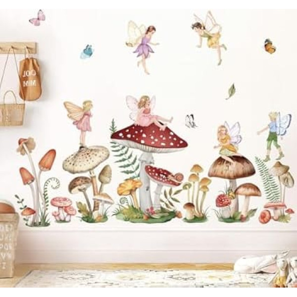 wondever Wall Sticker Girls Fairies Wall Sticker Mushroom Elves Butterfly Wall Sticker Wall Decoration for Children's Room Baby Room Girls Bedroom
