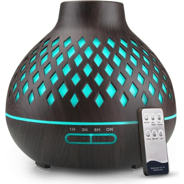 400 ml aromatherapy diffuser with remote control: capacity up to 400 ml, lasts up to 8 hours. The aroma diffuser comes with a remote control for the remote control, so you can do everything with this remote control without having to run around. 7 light colours and low noise: the essential oil diffuser has 7 different light colours, you can choose a colour that always lights up, or 7 colours that alternate. The noise level is less than 23 dB, you can use it as a sleeping night light that can create a quiet sleeping environment as well as enjoy a delicate and aromatic night. Multiple working modes and waterless automatic shut-off: the aroma diffuser for essential oils has 4 types of timer modes of \