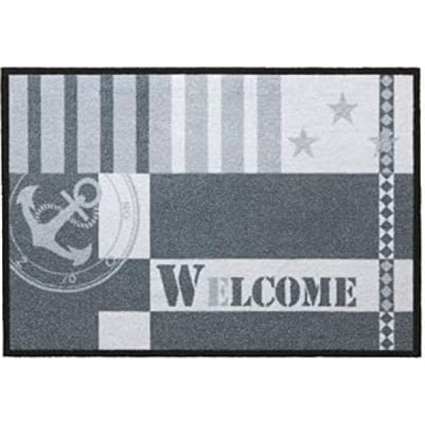 Doormat in a special design – maritime, modern pattern 'Welcome' Very robust and durable thanks to the material (100% polyamide) Easy to clean: washable at 30 °C or simply vacuum with a vacuum cleaner Does not slip thanks to the non-slip rubber back Unique pattern will enhance your entryway › See more product details