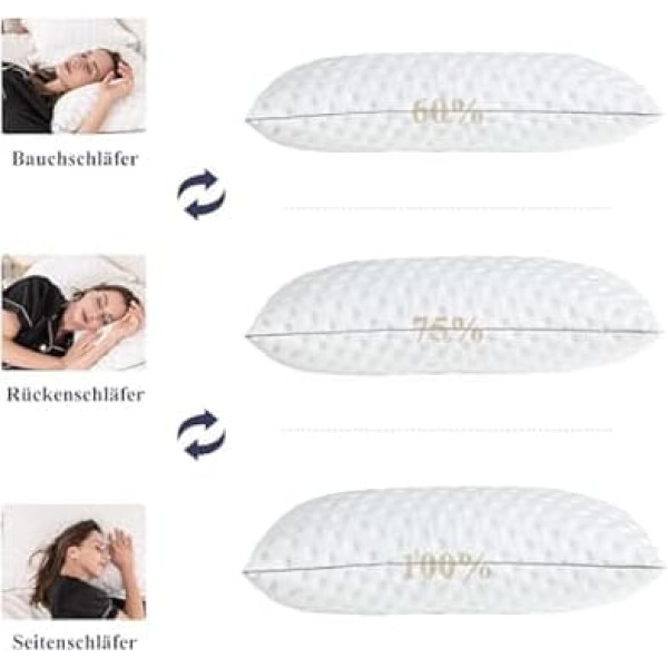 Sufficient support – the BedStory shredded memory foam pillow 40 x 80 cm adapts perfectly to your shoulders and neck. The cushion is ergonomically designed and gives you just the right amount of support and comfort. This pillow relieves the cervical spine and allows people with neck and shoulder pain to have a restful night's sleep. Adjustable height – If you have not yet found a pillow that has the right height for you, we recommend this cushion that can be adjusted to your habits. With the hidden zipper, you can increase or decrease the filling to find the perfect height and firmness for you and enjoy an individual sleep. This pillow is the perfect pillow for side sleepers, back sleepers and stomach sleepers. High quality filling – memory foam cushion contains 75% shredded memory foam with gel particles + 25% polyester fibres. The cooling gel memory foam helps absorb excess body heat and keep you comfortable and cool. The polyester fibre helps to balance the strength of the shredded foam in the cushion and prevents the foam from accumulating in one place. Cooler sleep all night – this memory foam pillow has a cover with a weight of 550 GSM. The skin-friendly soft cover is made of ice silk that feels cool and silky, which is perfect for those who tend to sweat to stay cool and comfortable all night. The pillowcase with zip is removable and washable. Peaceful customer service – BedStory cushions are perfect for personal use and as a gift and will accompany you every night. Please let the pillow rest for 24-48 hours before using it so that it can return to its original shape. If you have any questions, please do not hesitate to contact us. › See more product details