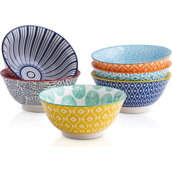 AMAZING DESIGNS - Colorful designs that will bring you happiness at every meal. HIGH QUALITY PORCELAIN - Made of sturdy porcelain, no harmful lead and cadmium. Microwave, dishwasher, refrigerator and oven safe up to 500 F CONVENIENT CAPACITY - A reasonable capacity (normal capacity is 8 oz, maximum capacity is 10 oz). The witch is perfect for everyday use - dessert, fruit, ice cream, etc. SPACE SAVING & EASY TO CLEAN These bowls stack well on your cabinet without taking up much space. Easy to wash with soap or just put it in the dishwasher. Pack of 6 - Enough for the family and all your guests to enjoy meals and gatherings together. › See more product details