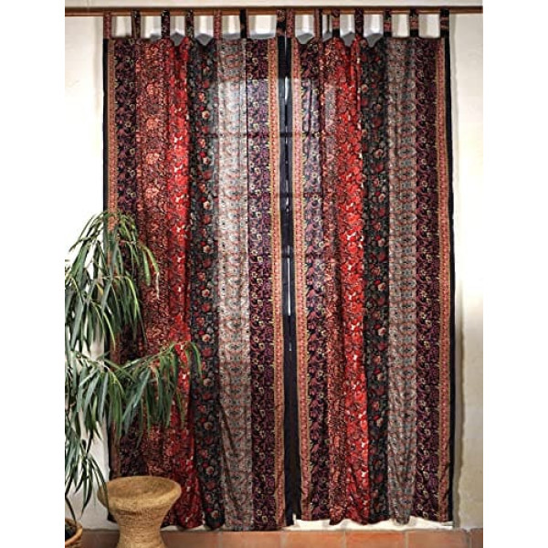 GURU SHOP Boho Patchwork Curtains, 1 Pair Bohemia Curtain Made of Sare Fabric, Unique 300 cm - Dark Red, Synthetic, Decorative Curtains