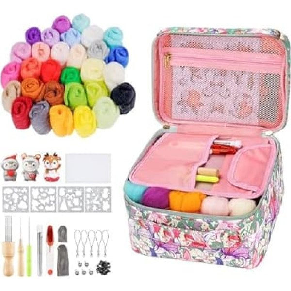 77-piece needle felt set - 30 colours natural felt wool (5 g/each colour), felt foam cushion x 1, wool felt shape x 4, felting needles x 6 (small, medium and coarse sizes, 2 each), leather finger cots x 2 (random colour), scissors x 1, softwood handle tools x 1, plastic awl x 1, glue stick x 1 (7 x 1000). 10, plastic eyes x 10, lanyard x 5, bells x 5, colourful handbags x 1. Felt set contains all the tools you need and is perfect for getting started 30 colours fairy tale wool - dry felting set beginners contains 30 colours of felting wool, each of 5 g colour, which are made of premium wool fibre, very soft and easy to use, all 30 colours felt wool are in a carry bag, which is also convenient for storage and transport. You can do DIY wool felting, needle felting, weaving and other crafts at any time. Various tool sizes - Multiple felting tools with wooden handles and single felting tools with wooden handles for easy on and felting needles for dry felting for different qualities of felting wool embroidery. During the DIY process, leather finger cots protect your hands from injury and are very safe. Great gift - Our needle felting kit contains 4 sets of graphic card patterns that allow you to make your first needle felting doll super easy and perfect, and comes with a beautiful carry bag that is perfect as a gift for friends, family or loved ones. Wide application - Wide range of paints and tools for hobby felting. Dry felting set can be used to make wool crafts, reative dolls, beautiful animals or felting projects, spiders, making art bats, thrum knitting, gift making and other projects. › See more product details; Product description Felt starter set strong plasticity, ideal for making toys, crafts and textiles. Fairytale wool for felting your own wool felt easy to enjoy and you can easily create different shapes you want, especially for beginners. The wool felt is suitable for projects such as felting, spiders, art building blocks, knitting etc. Felt starter set children. This is a fun interactive activity that is suitable for both children and adults to train children's hands well. and creative skills, promote communication between parents and children. Wool for felting - is a great gift for friends, family or lovers and a fun DIY gift for hobbyists. Felt wool wet felting, felt needles for dry felting, felting needles for dry felting set, sheep wool for felting. Features: 30 colours 30 Material: wool. Size: 25 x 19.5 x 12 cm. Weight for each wool: 5 g. Package includes: 30 x coloured wool fibres (5g/each colour). 1 x felt foam pad 4 x wool felt mould 6 x needles (small, medium and coarse, 2 each) 2 x leather finger cots (random colour), 1 x scissors, 1 x tool with softwood handle, 1 x plastic awl, 1 x glue stick (7 x 100 mm), 10 x noses 10 x plastic eyes. br >5 x lanyards for phones, 5 x bells, 1 x beautiful handbag; Product description Felt starter set strong plasticity, ideal for making toys, crafts and textiles. Fairytale wool for felting your own wool felt easy to enjoy and you can easily create different shapes you want, especially for beginners. The wool felt is suitable for projects such as felting, spiders, art building blocks, knitting etc. Felt starter set children. This is a fun interactive activity that is suitable for both children and adults to train children's hands well. and creative skills, promote communication between parents and children. Wool for felting - is a great gift for friends, family or lovers and a fun DIY gift for hobbyists. Felt wool wet felting, felt needles for dry felting, felting needles for dry felting set, sheep wool for felting. Features: 30 colours 30 Material: wool. Size: 25 x 19.5 x 12 cm. Weight for each wool: 5 g. Package includes: 30 x coloured wool fibres (5g/each colour). 1 x felt foam pad 4 x wool felt mould 6 x needles (small, medium and coarse, 2 each) 2 x leather finger cots (random colour), 1 x scissors, 1 x tool with softwood handle, 1 x plastic awl, 1 x glue stick (7 x 100 mm), 10 x noses 10 x plastic eyes. br >5 x lanyards for phones, 5 x bells, 1 x beautiful handbag; Felt starter set strong plasticity, ideal for making toys, crafts and textiles. Fairytale wool for felting your own wool felt easy to enjoy and you can easily create different shapes you want, especially for beginners. The wool felt is suitable for projects such as felting, spiders, art building blocks, knitting etc. Felt starter set children. This is a fun interactive activity that is suitable for both children and adults to train children's hands well. and creative skills, promote communication between parents and children. Wool for felting - is a great gift for friends, family or lovers and a fun DIY gift for hobbyists. Felt wool wet felting, felt needles for dry felting, felting needles for dry felting set, sheep wool for felting. Features: 30 colours 30 Material: wool. Size: 25 x 19.5 x 12 cm. Weight for each wool: 5 g. Package includes: 30 x coloured wool fibres (5g/each colour). 1 x felt foam pad 4 x wool felt mould 6 x needles (small, medium and coarse, 2 each) 2 x leather finger cots (random colour), 1 x scissors, 1 x tool with softwood handle, 1 x plastic awl, 1 x glue stick (7 x 100 mm), 10 x noses 10 x plastic eyes. br >5 x lanyards for phones, 5 x bells, 1 x beautiful handbag
