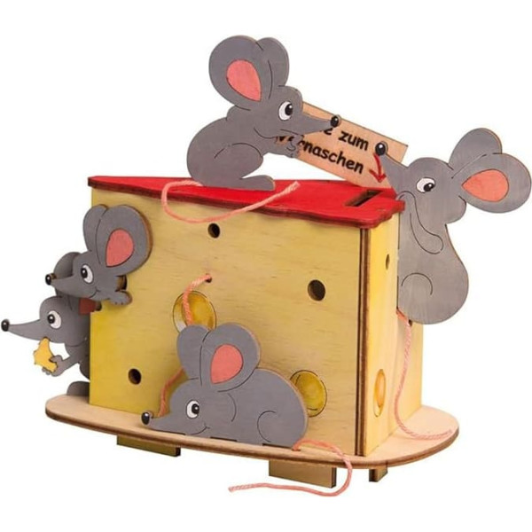 Drechslerei Kuhnert – Hobaku Craft Set – Money Box / Money Box – Motif: Mice – Decoration Made of Wood to Assemble – Dimensions: Approx. 18 x 11 x 15 cm – Made in Germany