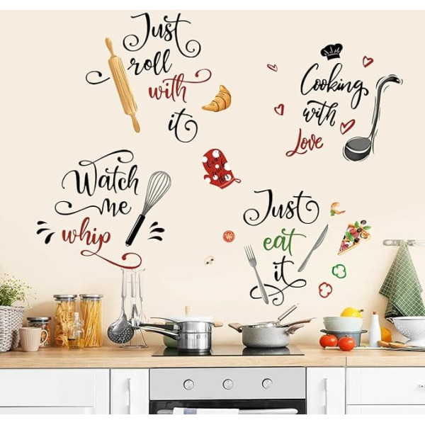 wondever Wall Sticker Kitchen Food Wall Sticker Kitchenware Sayings Wall Sticker Wall Decoration for Kitchen Cupboard Dining Room Baking Room
