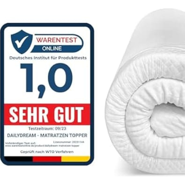 Our mission: good sleep for everyone. Anytime, anywhere. The viscoelastic foam: the viscoelastic foam is particularly suitable for people who tend to sleep softer. Our toppers offer unique pressure relief and the pressure distribution puts the body in an anatomically and ergonomically optimal position. This promotes better blood circulation and thus a deep and restful sleep. Additional product advantages: our mattress topper is non-slip thanks to the nubs on the bottom and the four straps for attaching to the corners. The cover soaked in \