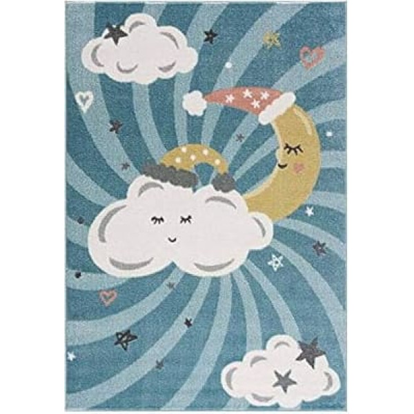 carpet city Children's Rug Children's Room Blue – 160 x 230 cm – Moon Clouds Stars – Children's Room Rugs Girls Boys – Baby Room Rug – Play Mat