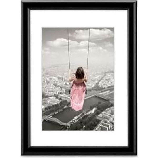 Hama Swing Picture Frame 50 x 70 cm with Mount Picture Format 30 x 45 cm Modern Plastic Frame for Portrait Format for Landscape Format Hanging Reflective Glass Black