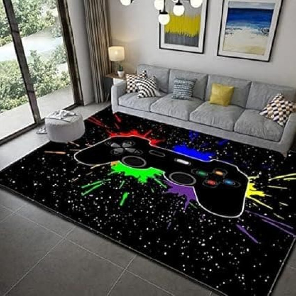 Gamer Rugs, Controller, Non-Slip Doormat, Home Runner, Carpet, for Living Room, Bedroom, Children’s Play/Crawling Mat, Teenagers’, Boys’, Large, Graphic, Game Console Rugs, Black, 160x200 cm