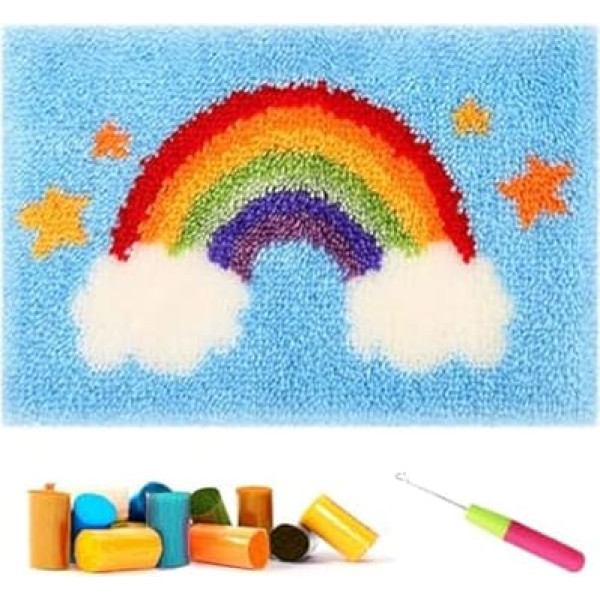 Perfect DIY Kits This is an unfinished latch hook kit that you need to finish by yourself. You can do this fun project yourself or invite family, children or friends to complete it together, enjoy DIY fun. Size: approx. 50 x 36 cm. Easy to use: comes with detailed drawing instructions. Just follow the instructions and make it easy and fun. HOME DECOR This DIY rug project has multiple purposes, put it on the floor to decorate your nursery, bedroom, living room or as a pet rug with bright colors. Unique gifts: Make this craft by hand, it must be a nice gift choice for family and friends to better express your love and wishes, as a housewarming gift, birthday gift, etc. PACKAGE INCLUDE:Set includes enough different colors, short yarns, color chart, blank rug hooks, mesh canvas, latch needle, crochet hook and instructions. English language not guaranteed). › See more product details