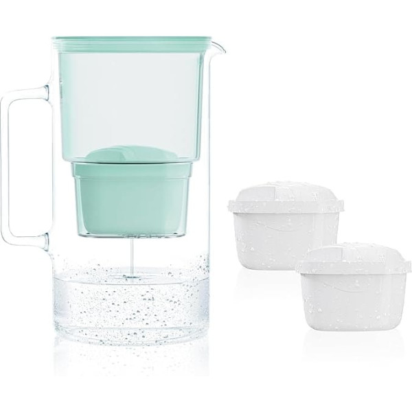 Wessper Water Filter Jug Glass 3 L, Set Water Jug and 2 Filter Cartridges, Compatible with Brita Maxtra, Water Carafe for Drinking Water with Replacement Filter - Mint