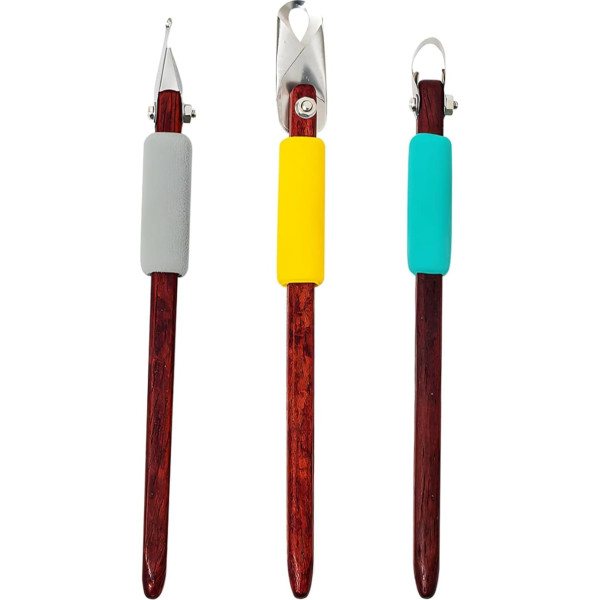 Value pack: you will receive 3 pieces of clay sculpture carving scraper tools in different styles, which provide different shapes for sculpture and provide greater flexibility for your design. A rich set of clay sculpture tools makes it easier and happier to make pottery. Superior quality: This wooden tape cutter is made of natural African padauk material with stainless steel cutting head, which makes the modelling tools light and sharp and provides fine details, accuracy and efficiency in carving, shaping, modelling, cutting, scraping, smoothing and pottering, saving time and energy. Rosewood handles are resistant to rot and corrosion and have a certain dark wood grain that is visible. NON-SLIP GRIP:Paired with non slip grip sleeve. The ergonomic design of these tools ensures a comfortable grip, allows for precise control and reduces hand fatigue during extended modeling sessions. Enjoy seamless and comfortable modelling. Nice gift choice: This is a quick start tool set for air-drying clay, designed for beginners, it will be a great gift for modelling ceramic enthusiasts or at school handmade clay sculptures. Versatile Use The clay modelling tools are perfect for clay lovers, potters, chefs, technicians and crafts (for scrapers, jewelry, laboratories, scientific work, welding, sculpture, wax, carving clay and cleaning). › See more product details