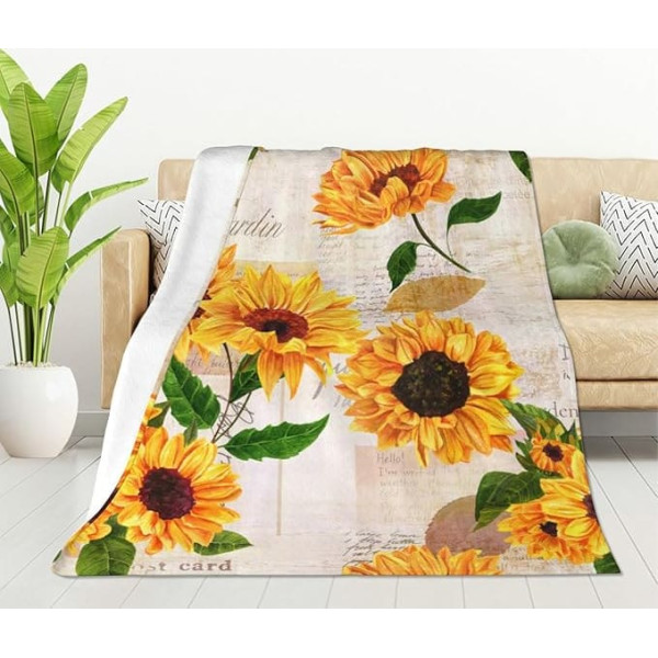 HGOD DESIGNS Watercolor Sunflowers Throw Blanket Vintage Floral Print Soft Blankets and Throws 100x130cm