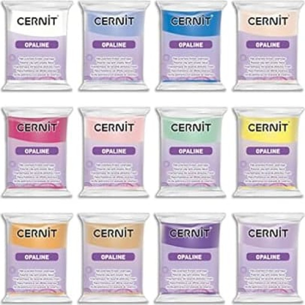 CERNIT - A Pack of 12 Polymer Dough Pieces Ceramic Effect (Semi Opaque) - Opaline Baking Modelling Clay - 12 - 56g Blocks - CE0880012K01C