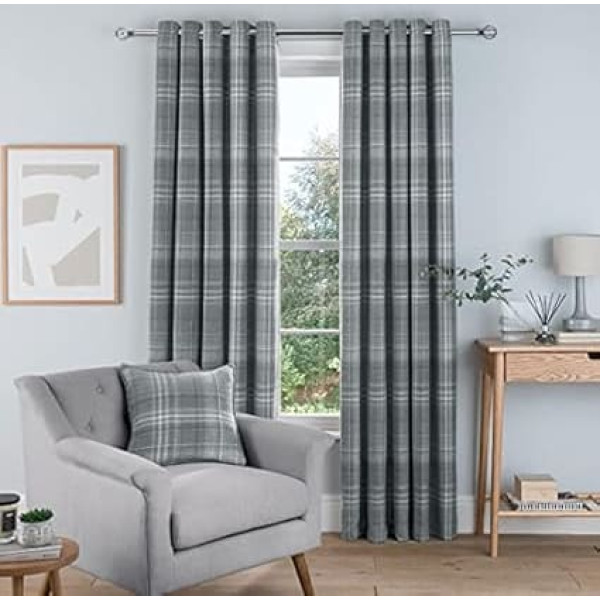 PREMIUM TEXTURE - Features a modern and stylish plaid design, these grommet curtains are sold ready to hang, in any bedroom, living room, or any room that needs a new window treatment. Lined to filter out light in any room SET OF 2 - This package contains 2 ready-made curtains, each measuring 66 inches wide by 54 inches long. 10 grommets per panel with 6cm diameter which easily fit standard curtain rods. STYLISH AND ELEGANT - These curtains come in 3 modern colors, perfect for any room decor. EASY CARE - Machine washable at 30 degrees COORDINATE - Matching pillows available to complete the look. › See more product details