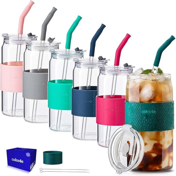Broken? Missing? We promise to shop without worry. If you find that the cup is broken during transportation or the accessories are missing after you receive the product package, please contact us via Amazon, and we will definitely provide you with a satisfactory solution in no time. VERSATILE ACCESSORIES FOR ALL NEEDS Canned shaped glass cups 6 pack versatile lids 6 pack (drink directly or with a straw), removable silicone sleeve in 6 colors, glass straws 6 pieces (6 straight tubes, 6 silicone tips, 2 cleaning brushes). Each accessory can be easily washed in the dishwasher Easier to Identify The colorful silicone case not only keeps hands comfortable and safe without fear of violent hot and cold shocks, but also makes it easier for your guests to identify their drinks THICKER & DURABLE:Colovie strictly chooses superior and more transparent food grade borosilicate glass (BPA free, lead free, holds -55.6 C to 100.0 C), which is thicker than other brands, but not bulky. Preparing for the next occasion has never been easier with this more durable glass travel mug DISHWASHER & FREEZER SAFE The nice clean look creates a surprising presentation for your favorite cocktail recipes, so sweet for sodas, smoothies or boba. Cool them for an ice cold brew that hits the right spot perfectly SECURELY PACKAGED GIFT They make a perfect gift for birthdays, special occasions or anyone who builds a home bar. Ideally packaged securely as a gift for friends, family, colleagues, girlfriends and friends. Great for road trips, holidays, housewarming gifts, parties and even for yourself › See more product details; Product description ColoVie Tumbler Tumbler with Silicone Protective Cover 6 Pack Travel Glass Tumbler with Lid and Glass Straws Iced Coffee Cup Soda Beer Tumblers Safely Packaged; Product description ColoVie Tumbler Tumbler with Silicone Protective Cover 6 Pack Travel Glass Tumbler with Lid and Glass Straws Iced Coffee Cup Soda Beer Tumblers Safely Packaged; ColoVie Tumbler Tumbler with Silicone Protective Cover 6 Pack Travel Glass Tumbler with Lid and Glass Straws Iced Coffee Cup Soda Beer Tumblers Safely Packaged