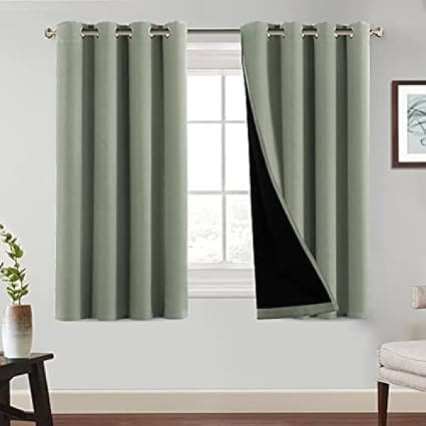 Thermal Curtain, 100% Opaque Curtains with Eyelets, Cold Protection, Blackout Curtains, Heat Insulating, Double Layer Eyelet Curtain, Pack of 2 (Sage Green, W 150 cm x H 150 cm)
