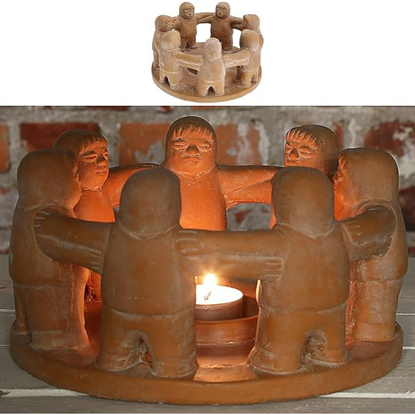 This beautiful circle of friends tea light holder symbolises friendship, peace, love and gratitude in life. This Terracotta 6 Friends Circle is a timeless and beautiful table decoration that offers space for a candle in the middle. Whether as a gift for a special person or simply for yourself as a table decoration, this sculpture as a tea light holder is a real eye-catcher. Dimensions: W 20cm x H 11cm x W 20cm Material: Terracotta Box contents: 1 x tealight holder \; Product description Tea light holder circle of friends. Details: Model: Friends. Dimensions: W 20cm x H 11cm x W 20cm Material: terracotta. Colour: reddish brown. Weight: 1.70 kg. Description: Friendship circles embody peace, cohesion and love. The seven embracing people are a symbol of the comfort that the supportive circle of our loved ones gives us. In an elegant terracotta look, it creates a cosy atmosphere and also spreads a pleasant light. Together, the figures stand together in a circle and hold in their arms. A tea light burns in the middle, which provides cosy warmth. The tea light holder is ideal for relaxing hours and provides sensual moments thanks to its gentle shadow. Give this symbolic piece to a loved one and express your affection. A beautiful decoration idea that brings joy. Box contents: 1 x tealight holder circle of friends without decoration.; Product description Tea light holder circle of friends. Details: Model: Friends. Dimensions: W 20cm x H 11cm x W 20cm Material: terracotta. Colour: reddish brown. Weight: 1.70 kg. Description: Friendship circles embody peace, cohesion and love. The seven embracing people are a symbol of the comfort that the supportive circle of our loved ones gives us. In an elegant terracotta look, it creates a cosy atmosphere and also spreads a pleasant light. Together, the figures stand together in a circle and hold in their arms. A tea light burns in the middle, which provides cosy warmth. The tea light holder is ideal for relaxing hours and provides sensual moments thanks to its gentle shadow. Give this symbolic piece to a loved one and express your affection. A beautiful decoration idea that brings joy. Box contents: 1 x tealight holder circle of friends without decoration.; Tea light holder circle of friends. Details: Model: Friends. Dimensions: W 20cm x H 11cm x W 20cm Material: terracotta. Colour: reddish brown. Weight: 1.70 kg. Description: Friendship circles embody peace, cohesion and love. The seven embracing people are a symbol of the comfort that the supportive circle of our loved ones gives us. In an elegant terracotta look, it creates a cosy atmosphere and also spreads a pleasant light. Together, the figures stand together in a circle and hold in their arms. A tea light burns in the middle, which provides cosy warmth. The tea light holder is ideal for relaxing hours and provides sensual moments thanks to its gentle shadow. Give this symbolic piece to a loved one and express your affection. A beautiful decoration idea that brings joy. Box contents: 1 x tealight holder circle of friends without decoration.