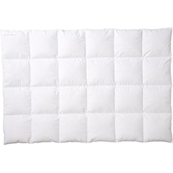 Centa-Star Extra Moonlight duvet, made in Germany For fabulous sleeping pleasure and a premium-quality, dry sleeping environment Wonderfully cosy, white, new Scandinavian down and feathers (90% down, 10% feathers); elegant lining made of durable, fine cotton wadding (100% cotton); washable up to 40 °C › See more product details; Product description Product Description MoonlightTraumhafter Schlafcomfort durch die feine atmungsaktive Baumwollhülle in Verbindung mit den feuchtigkeitsregulierenden Eigenschaften der Daunen und Federn höchster Qualität. Moonlight zeichnet sich als leichte, warme und anschmiegsame Kassettendecke für extra erholsamen Schlaf aus. Die Hüllenkonstruktion mit 4 x 6 Karos verhindert durch die Innenstege das Verrutschen der Füllung. Verpackt in einer praktischen Aufbewahrungstasche.Daunen eignen sich perfekt als natürlicher Wärmespeicher. Die besonders isolierende Wirkung der Daunen ist auf den dreidimensionalen Aufbau mit dem kaum sichtbaren Kern und den zahlreichen kleinsten strahlenförmigen Verästelungen zurückzuführen, die immens viel Luft einschließen können. Daunen sind absolute Leichtgewichte, sie wiegen nur ca. 0,001-0,002 Gramm. Durch ihre hohe Elastität sind sie besonders gut als Füllung für Betten und Kissen geeignet.Waschtipps: Unsere Daunenbetten sind bei 40 Grad C in der 7-kg-Haushaltswaschmaschine im Wollprogramm waschbar. Bitte verwenden Sie unbedingt alkalifreie Fein- oder Daunenwaschmittel. Spülen und schleudern Sie das Bett gründlich. Trocknen ist im Wäschetrockner bis 120 Grad möglich und wird empfohlen - sie benötigen mindestens 2 Durchläufe. Legal Disclaimer Bezug: 100% Baumwolle, Füllung: 90% Daunen, 10% Federn; Product description Product Description MoonlightTraumhafter Schlafcomfort durch die feine atmungsaktive Baumwollhülle in Verbindung mit den feuchtigkeitsregulierenden Eigenschaften der Daunen und Federn höchster Qualität. Moonlight zeichnet sich als leichte, warme und anschmiegsame Kassettendecke für extra erholsamen Schlaf aus. Die Hüllenkonstruktion mit 4 x 6 Karos verhindert durch die Innenstege das Verrutschen der Füllung. Verpackt in einer praktischen Aufbewahrungstasche.Daunen eignen sich perfekt als natürlicher Wärmespeicher. Die besonders isolierende Wirkung der Daunen ist auf den dreidimensionalen Aufbau mit dem kaum sichtbaren Kern und den zahlreichen kleinsten strahlenförmigen Verästelungen zurückzuführen, die immens viel Luft einschließen können. Daunen sind absolute Leichtgewichte, sie wiegen nur ca. 0,001-0,002 Gramm. Durch ihre hohe Elastität sind sie besonders gut als Füllung für Betten und Kissen geeignet.Waschtipps: Unsere Daunenbetten sind bei 40 Grad C in der 7-kg-Haushaltswaschmaschine im Wollprogramm waschbar. Bitte verwenden Sie unbedingt alkalifreie Fein- oder Daunenwaschmittel. Spülen und schleudern Sie das Bett gründlich. Trocknen ist im Wäschetrockner bis 120 Grad möglich und wird empfohlen - sie benötigen mindestens 2 Durchläufe. Legal Disclaimer Bezug: 100% Baumwolle, Füllung: 90% Daunen, 10% Federn; Product Description MoonlightTraumhafter Schlafcomfort durch die feine atmungsaktive Baumwollhülle in Verbindung mit den feuchtigkeitsregulierenden Eigenschaften der Daunen und Federn höchster Qualität. Moonlight zeichnet sich als leichte, warme und anschmiegsame Kassettendecke für extra erholsamen Schlaf aus. Die Hüllenkonstruktion mit 4 x 6 Karos verhindert durch die Innenstege das Verrutschen der Füllung. Verpackt in einer praktischen Aufbewahrungstasche.Daunen eignen sich perfekt als natürlicher Wärmespeicher. Die besonders isolierende Wirkung der Daunen ist auf den dreidimensionalen Aufbau mit dem kaum sichtbaren Kern und den zahlreichen kleinsten strahlenförmigen Verästelungen zurückzuführen, die immens viel Luft einschließen können. Daunen sind absolute Leichtgewichte, sie wiegen nur ca. 0,001-0,002 Gramm. Durch ihre hohe Elastität sind sie besonders gut als Füllung für Betten und Kissen geeignet.Waschtipps: Unsere Daunenbetten sind bei 40 Grad C in der 7-kg-Haushaltswaschmaschine im Wollprogramm waschbar. Bitte verwenden Sie unbedingt alkalifreie Fein- oder Daunenwaschmittel. Spülen und schleudern Sie das Bett gründlich. Trocknen ist im Wäschetrockner bis 120 Grad möglich und wird empfohlen - sie benötigen mindestens 2 Durchläufe. Legal Disclaimer Bezug: 100% Baumwolle, Füllung: 90% Daunen, 10% Federn