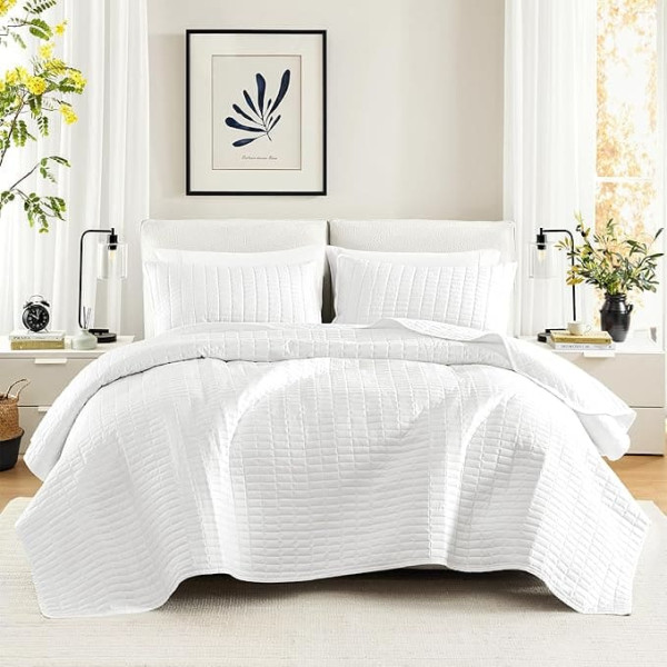 Comfort Spaces Kienna Duvet Cover Set, Luxury Double Sided Stitching Summer Comforter Lightweight Soft All Season Bedding Matching Pillowcase White Coverlet King/Cal King (104" x 90") 3 Pieces