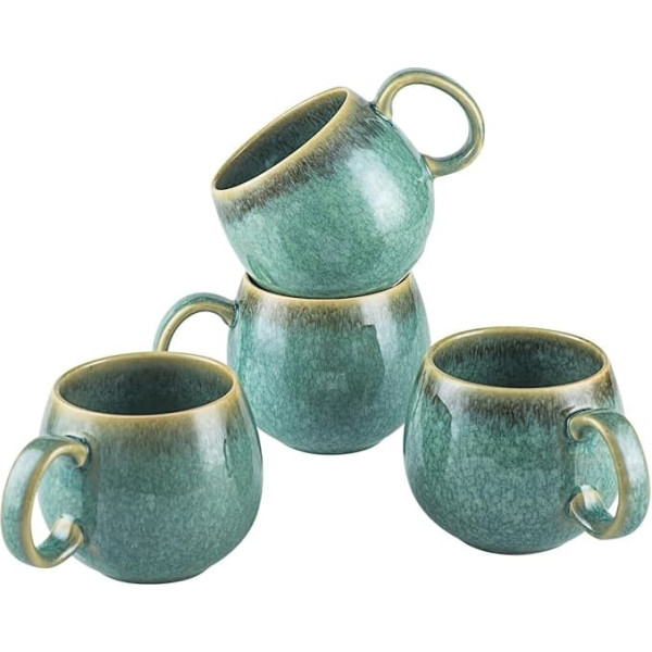 COMFORTABLE & EASY TO HOLD The extra large handle makes it easy to hold, so you don't have to worry about spills or drips. Create a completely new drinking experience to better taste the taste of the food. MULTIPURPOSE MUGS These simple yet elegant mugs are a clever size and hold 20 ounces. The ceramic mugs are suitable for both hot and cold drinks. Coffee, soup, tea, milk, latte, hot chocolate and other drinks go well with it. Captivating Reactive Glaze in Green - The jumbo cups are made from lead-free, cadmium-free and non-toxic food grade color glaze. Immerse your table setting in the captivating beauty of Reactive Glaze Green. The unique reactive glaze ensures that each tumbler is unique and adds a touch of artistry to your culinary presentation. OVEN AND DISHWASHER SAFE High fired ceramic is heat resistant and can be used in ovens up to 500°F. The large soup cups are microwave, refrigerator and dishwasher safe and versatile. EASY TO STACK AND CLEAN The cups are stackable and fit well in shelves or cabinets to maximize space in your cupboard. The non-stick and smooth glaze prevents sticking and peeling and is easy to clean in the dishwasher or by hand. › See more product details