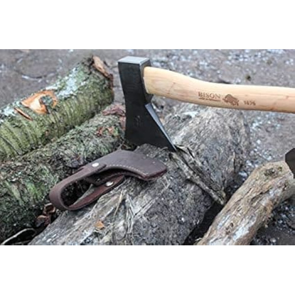 Hand forged according to traditional blacksmithing Quality steel - tool steel grade A - head 800 g, medium strength blade with wide cutting edge Handle 380 mm made of hickory wood varnished - highly durable tool handles Triple safety wedging Genuine leather cutting guard › See more product details; Product description Product Description Bison 1879 universal hatchet 800 g length: 380 mm for garden, camping and outdoor use Safety Warning No; Product description Product Description Bison 1879 universal hatchet 800 g length: 380 mm for garden, camping and outdoor use Safety Warning No; Product Description Bison 1879 universal hatchet 800 g length: 380 mm for garden, camping and outdoor use Safety Warning No