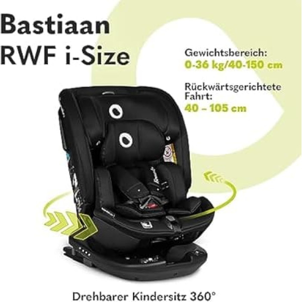 LIONELO Bastiaan RWF Baby and Toddler Car Seat 0-36kg from 40-150cm 360° Rotatable ISOFIX Certified i-Size R129 Latest Standard Front and Rear Attachment Side Protection Fully Adjustable