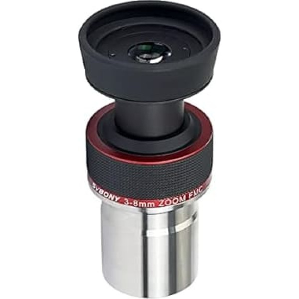 1.25 inch 3-8 mm zoom planetary telescope lens; suitable for short focal length refractor telescopes; effectively improves the contrast of planetary targets Parfocal zoom telescope eyepiece; by maintaining parfocity, you don't have to refocus after each new focal length setting; less time to adjust the equipment 56° constant apparent field of view; keeps you in a comfortable observation state every time you switch to a new focal length 6-element 4-group lens design with FMC coating; reduce reflectivity and effectively increase light transmission; improved image contrast for planetary observation targets Click stops every millimeter; eyepiece clicks when changing the focal length; easy to change the focus even in the dark › See more product details