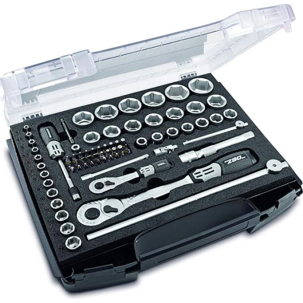 Practical: the 1/4 inch socket wrenches from 4 - 14 mm and the 1/2 inch socket wrenches from 10 - 32 mm represent a complete ratchet box. Thanks to the practical i boxx, this ratchet box is compatible with the popular Sortimo system, which allows the tool set to be integrated into an existing system. Handy: the smartyBox S5 combines a socket spanner set in 1/2 inch and 1/4 inch with a bit set and a screwdriver set. 30 bits with colour guide system for faster identification in combination with the socket handle with innovative bayonet closure, which can be used as a bit holder as well as a socket spanner holder, solve 90% of screw connections. Ingenious: a Z90 lever - reversible ratchet should not be missing in any tool box. The ratchet with 90 teeth and extra small swivel angle of only 4° is the tool for loosening screws in hard-to-reach places and in confined spaces. The Matador smartyBox S5 contains a 1/4 inch and a 1/2 inch Z 90 ratchet. Smart: The smartyBox S5 combines various applications: whether as a car tool, motorcycle tool or bicycle tool set, the Matador ratchet box is the smart and cost-efficient solution. Matador socket wrenches are forged from high-quality chrome vanadium steel. In addition, the Matador SmartDrive profile produces less wear as the force is applied to the flanks of the screw - not to the corners. MATADOR: Since 1900, pioneer of the German tool industry and manufacturer of hand tools, which stands for quality and reliability. Authorised manufacturer of the automotive industry with production in Remscheid. For makers, fighters and heroes of everyday life. For real Matadore. Always following the motto: Be a Matador. › See more product details