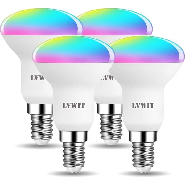 LVWIT WLAN Smart LED Lamp Reflector, E14 4.9 W Dimmable Light Bulb, Multicoloured RGB Light, Wifi Bulb Compatible with Alexa Echo Google Home SmartThings, No Hub Required - 4 Pack