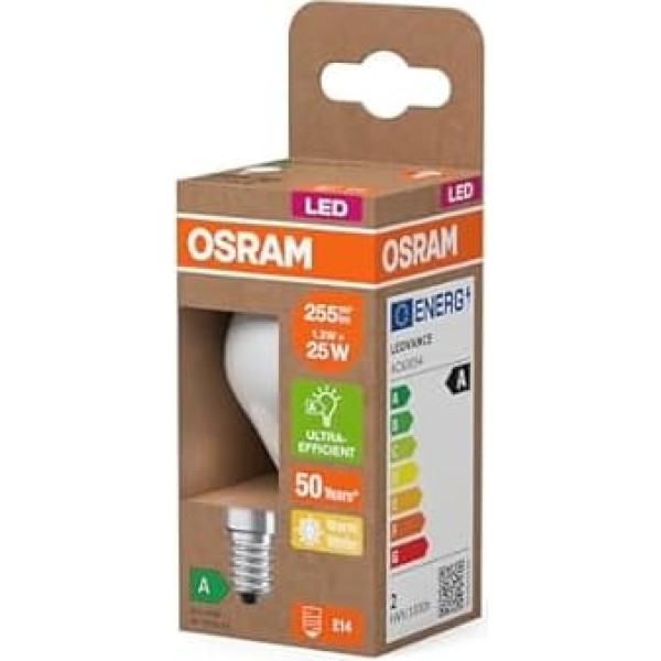 Osram Classic Mini Ball LED Light Bulb with Decorative Frosted LED Filament Energy Class A E14 1.2W 255lm 2700K Warm White Warm White 6-Pack